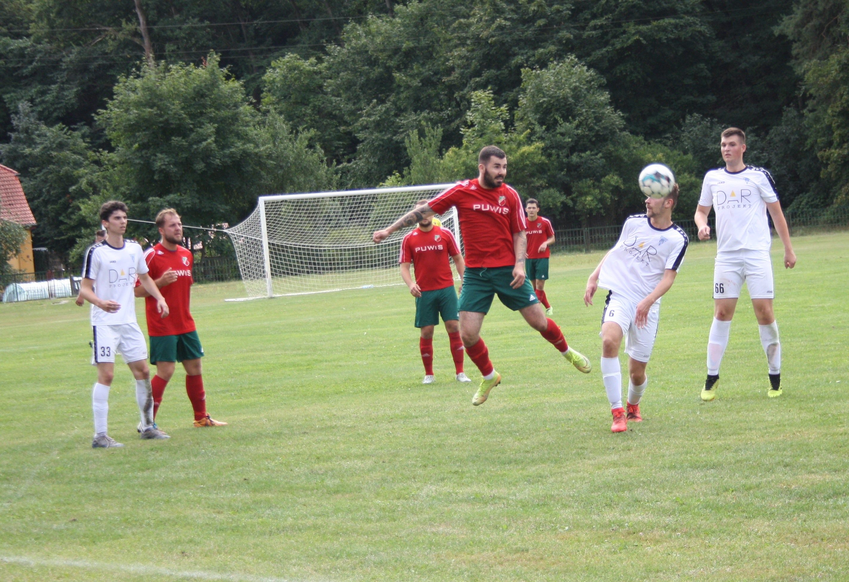 Mecz derbowy w klasie okręgowej przypadł na drugą kolejkę rozgrywek. Pomorzanin, który w ubiegłym sezonie walczył o awans do IV ligi, w obecnych rozgrywkach również powinien rywalizować o najwyższe laury. Z kolei Masovia to beniaminek, dla którego nadrzędnym celem w tym sezonie będzie utrzymanie w lidze. Początek meczu potwierdził te spekulacje. Gospodarze już w 4 minucie objęli prowadzenie po golu Karola Osakiewicza. Później Masovia próbowała odrobić straty, jednak do przerwy więcej goli już nie padło. Początek drugiej odsłony spotkania zaskoczył kibiców, a przede wszystkim miejscowych. Masovia ruszyła odważnie do ataku, przejmując inicjatywę. Pomorzanin zaczął się gubić w obronie i w efekcie już w 47 minucie goście doprowadzili do wyrównania po golu Tomasza Pluty. Masovia po strzeleniu bramki jeszcze przez kilka minut była w natarciu, jednak nie wiele z tego wynikło i Pomorzanin zaczął odzyskiwać kontrolę nad spotkaniem. W 60 minucie gospodarze ponownie wyszli na prowadzenie po bramce Mariusza Stachowiaka. Później swój show miał Karol Ława, który w 70, 78 i 86 minucie strzelał gole, zaliczając klasycznego hattricka. Pomorzanin pokonał beniaminka z Maszewa 5:1, notując drugie zwycięstwo w drugim meczu w sezonie.