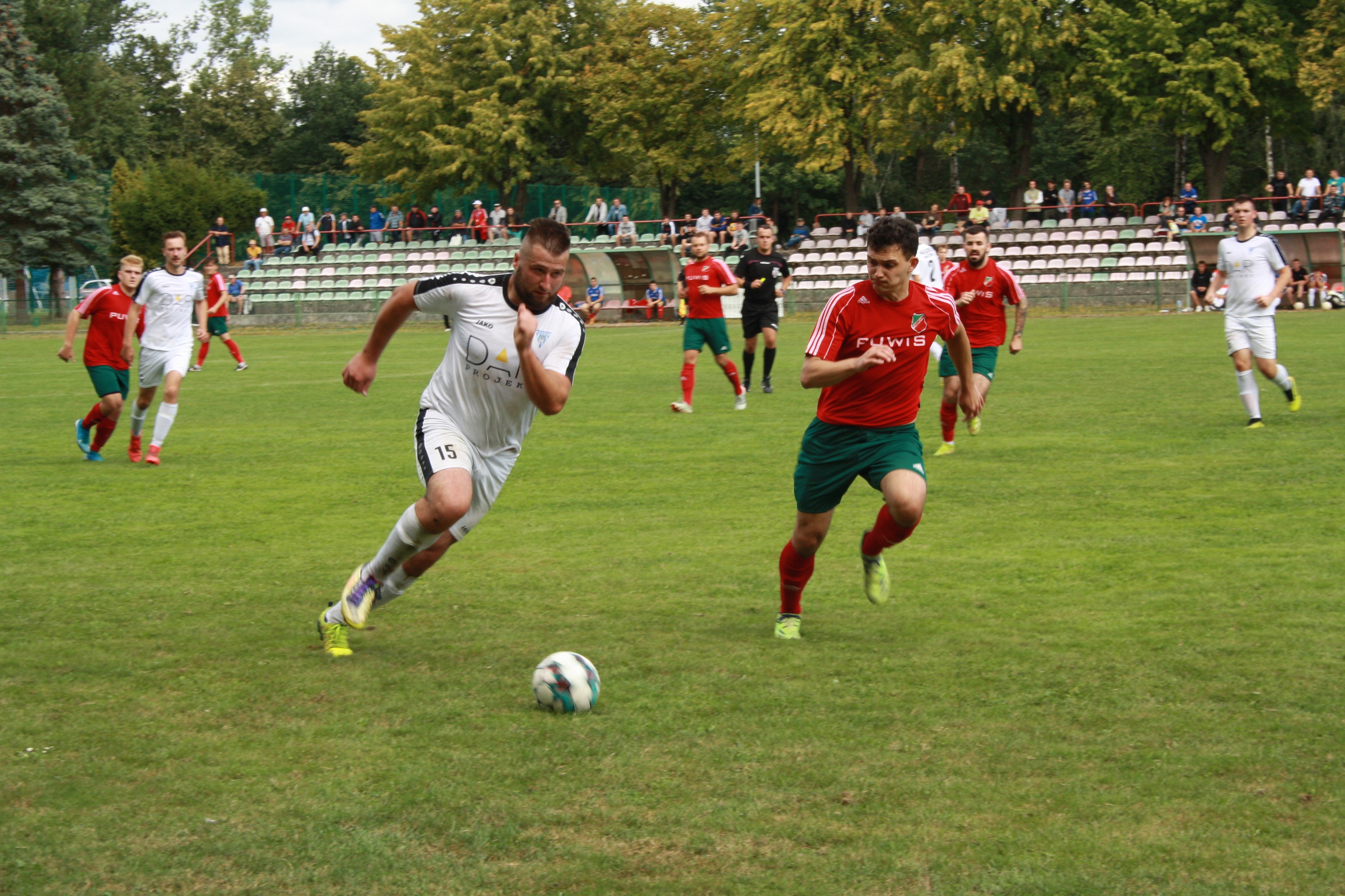 Mecz derbowy w klasie okręgowej przypadł na drugą kolejkę rozgrywek. Pomorzanin, który w ubiegłym sezonie walczył o awans do IV ligi, w obecnych rozgrywkach również powinien rywalizować o najwyższe laury. Z kolei Masovia to beniaminek, dla którego nadrzędnym celem w tym sezonie będzie utrzymanie w lidze. Początek meczu potwierdził te spekulacje. Gospodarze już w 4 minucie objęli prowadzenie po golu Karola Osakiewicza. Później Masovia próbowała odrobić straty, jednak do przerwy więcej goli już nie padło. Początek drugiej odsłony spotkania zaskoczył kibiców, a przede wszystkim miejscowych. Masovia ruszyła odważnie do ataku, przejmując inicjatywę. Pomorzanin zaczął się gubić w obronie i w efekcie już w 47 minucie goście doprowadzili do wyrównania po golu Tomasza Pluty. Masovia po strzeleniu bramki jeszcze przez kilka minut była w natarciu, jednak nie wiele z tego wynikło i Pomorzanin zaczął odzyskiwać kontrolę nad spotkaniem. W 60 minucie gospodarze ponownie wyszli na prowadzenie po bramce Mariusza Stachowiaka. Później swój show miał Karol Ława, który w 70, 78 i 86 minucie strzelał gole, zaliczając klasycznego hattricka. Pomorzanin pokonał beniaminka z Maszewa 5:1, notując drugie zwycięstwo w drugim meczu w sezonie.
