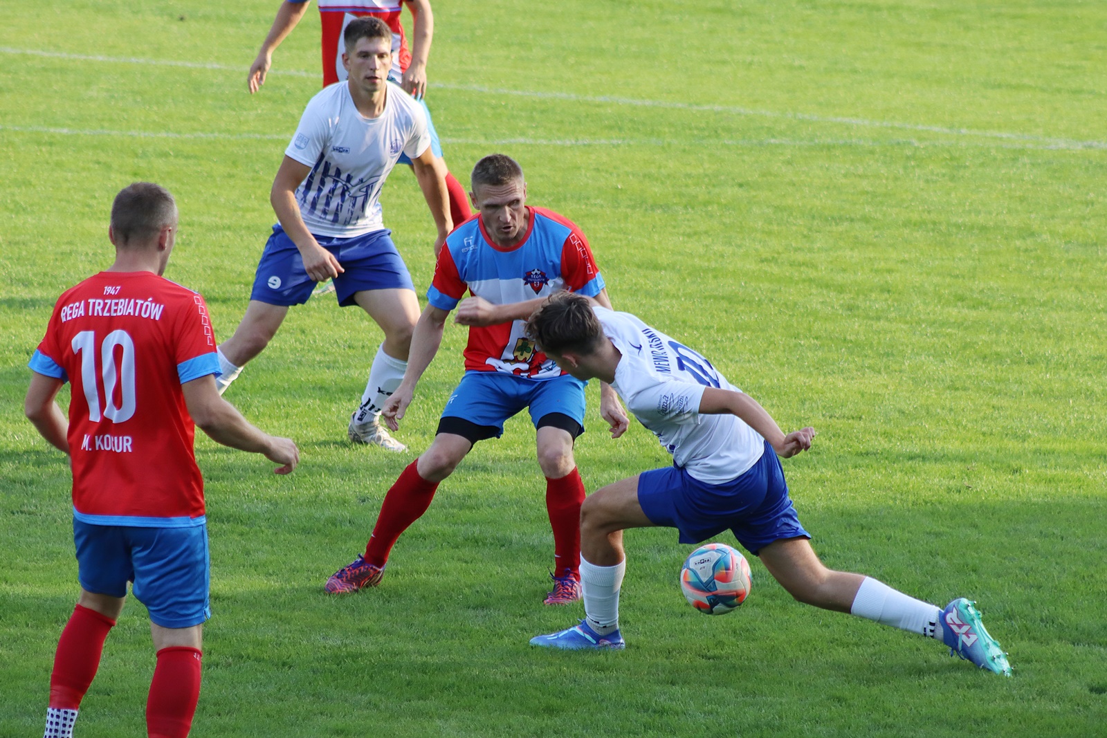 Rega Trzebiatów pewnie pokonała Mewę Resko 6:1. Śmiało można okrzyknąć Damiana Jaśnikowskiego zawodnikiem meczu, ponieważ zdobył on aż 5 bramek dla drużyny z Trzebiatowa (5, 10, 12, 22, 60 minuta meczu). Jeszcze jedno trafienie, w 90 minucie meczu, dołożył Daniel Kocur. Po rozegraniu czterech spotkań sezonu 2024/2025 podopieczni Macieja Kiszkiela zajmują drugą pozycję w tabeli klasy okręgowej z 10 punktami i do lidera Gryfa Kamień Pomorski tracą 2 punkty.