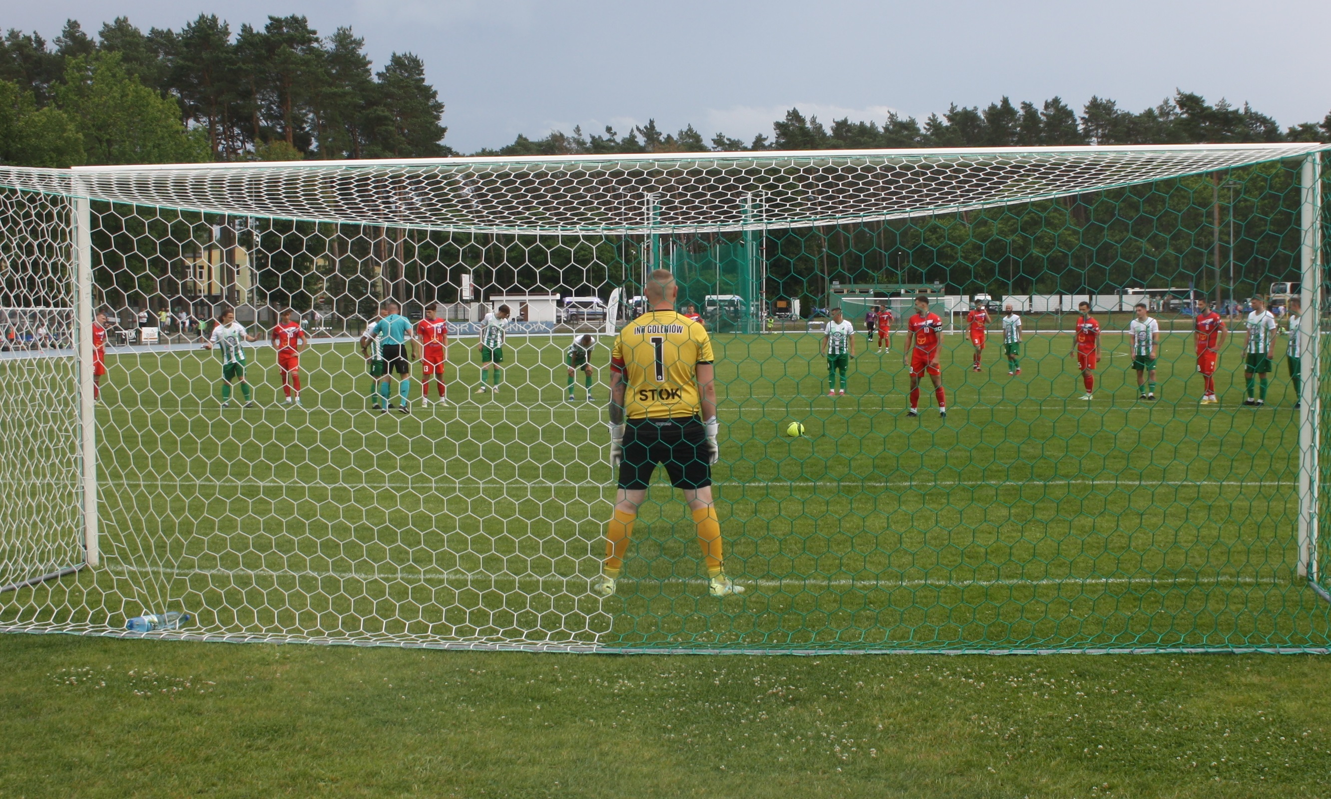 Podopieczni Mariusza Bernacha już w 3 minucie stracili gola. Biało-zieloni nie przestraszyli się wyżej notowanego rywala i w 26 minucie po celnym trafieniu grającego prezesa Piotra Winogrodzkiego doprowadzili do remisu. Wynikiem 1:1 zakończyła się pierwsza część spotkania. Druga połowa rozpoczęła się świetnie dla Iny. Najpierw w 48 minucie Henger skutecznie obronił rzut karny, a w 59 minucie Ina po składnej akcji objęła prowadzenie po celnym trafieniu Banachewicza. Niestety w 71 minucie sędzia podyktował drugi rzut karny dla gości w tym spotkaniu po faulu Winogrodzkiego, któremu pokazał czerwoną kartkę. Tym razem ekipa z Koszalina skutecznie wykonała jedenastkę i doprowadziła do remisu. Do końca spotkani wicelider atakował, jednak skutecznie bronił Henger i mecz zakończył się podziałem punktów.