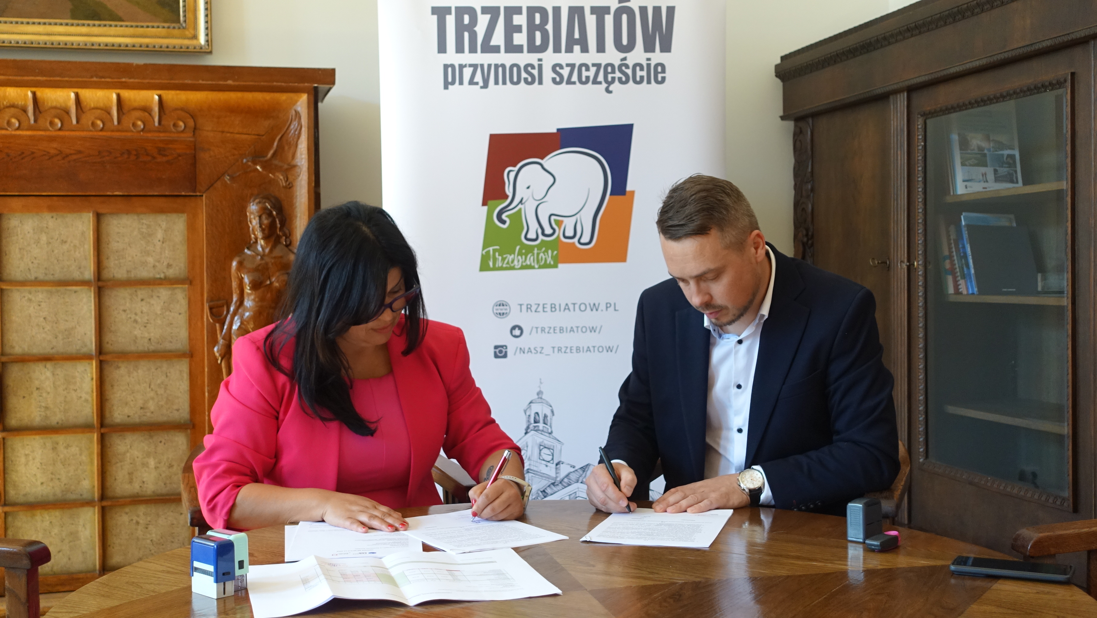 W środę w Urzędzie Miejskim w Trzebiatowie burmistrz Marzena Domaradzka podpisała umowy z wykonawcami dwóch inwestycji: poprawa efektywności energetycznej budynku Szkoły Podstawowej nr 2 oraz zabezpieczenie dawnej sali taneczno-koncertowej (kinowej) w wyłączonym z użytkowania Domu Kultury.