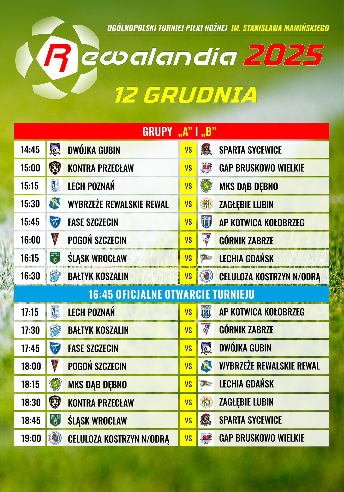 Tegoroczna, XXIV edycja Ogólnopolskiego Turnieju Piłki Nożnej imienia Stanisława Mamińskiego „Rewalandia” rozpocznie się w piątek, 12 grudnia, i potrwa przez cały weekend. Na niedzielę, 14 grudnia, zaplanowano spotkania finałowe.