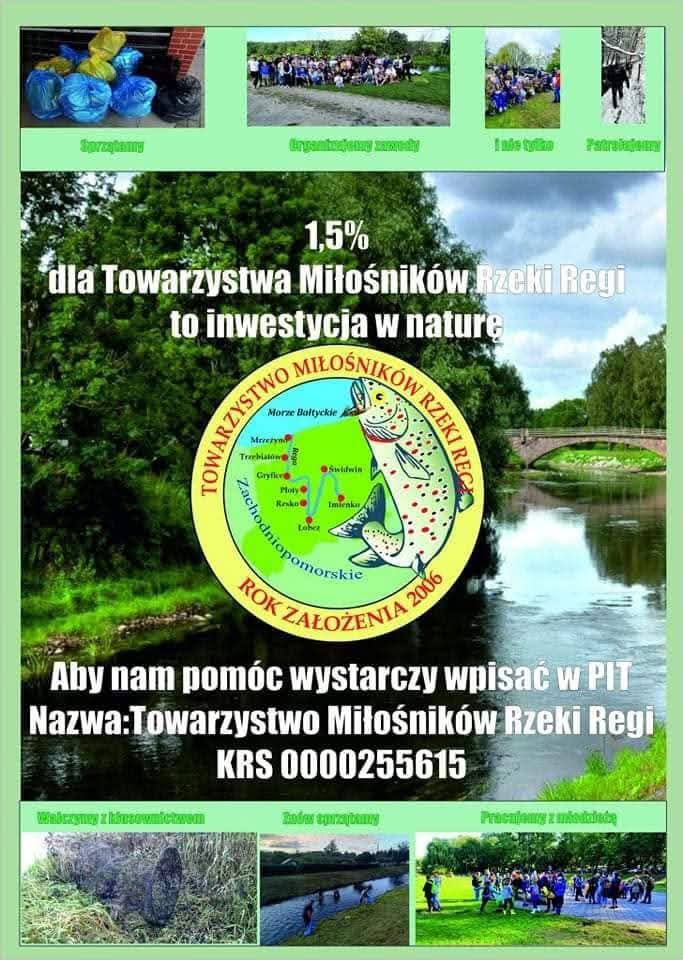 Aby przekazać 1,5% podatku, wystarczy w zeznaniu PIT wpisać nazwę organizacji - Towarzystwo Miłośników Rzeki Regi, numer KRS 0000255615 oraz dopisać cel szczegółowy: „Zarybianie Rejowice”.