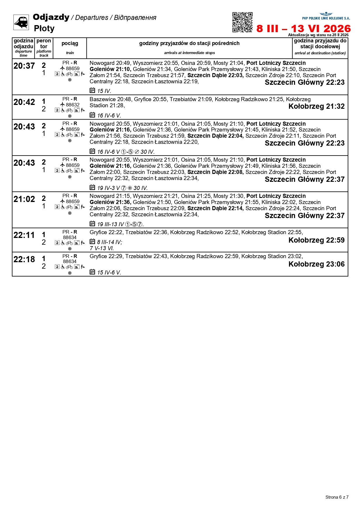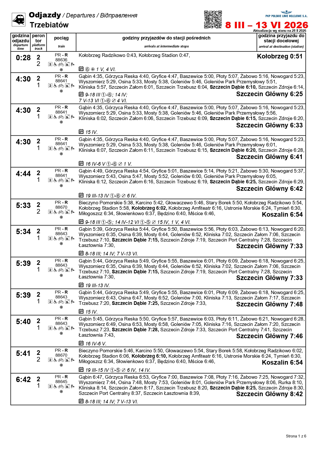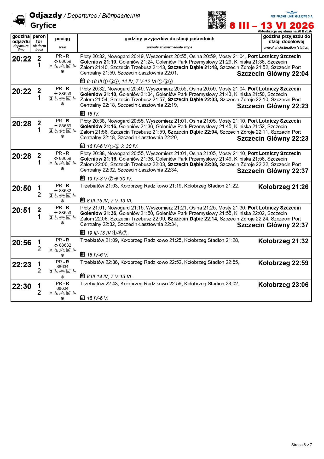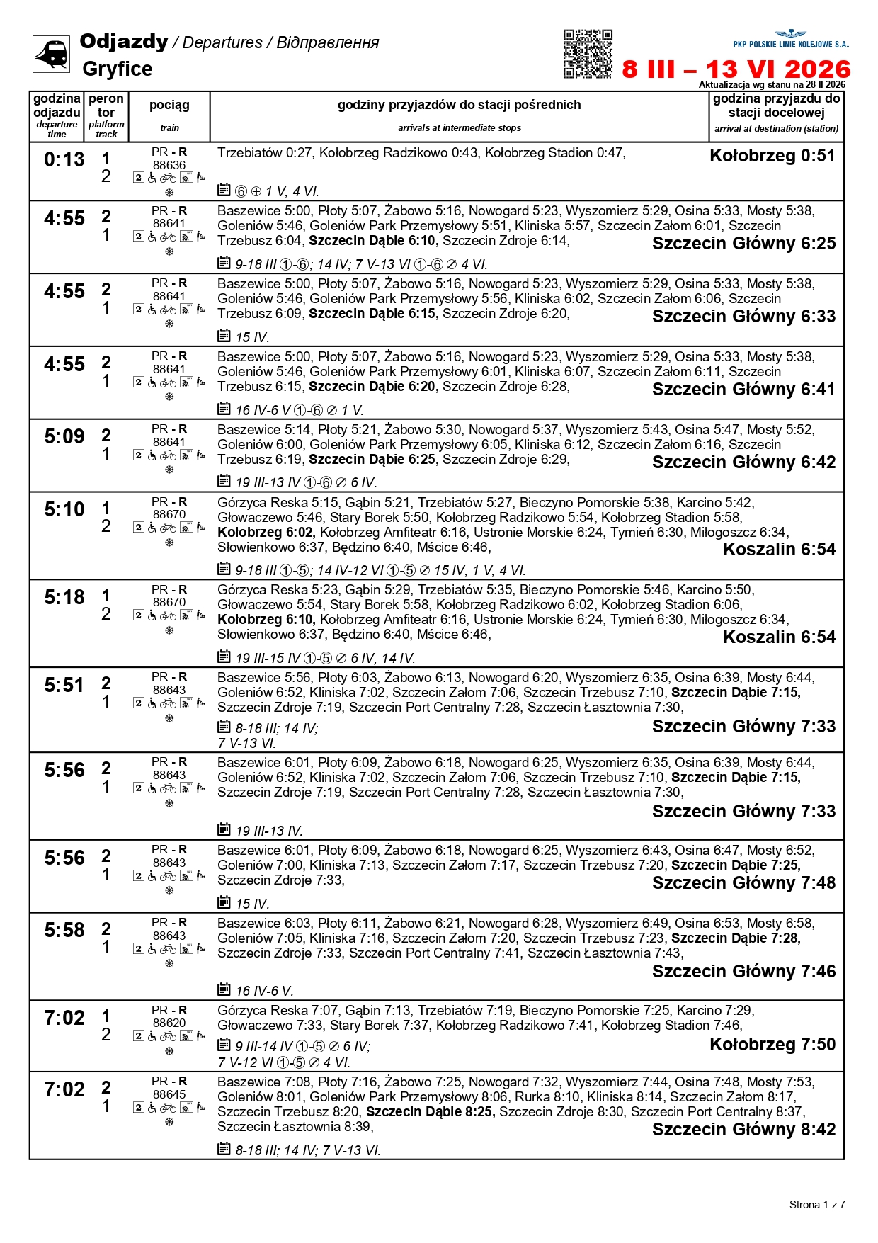 Nowością będzie para pociągów w relacji Szczecin Główny–Kołobrzeg. „Solny” będzie kursować między 1 a 3 maja oraz 4 i 6-7 czerwca. Skład wyruszy ze Szczecina o godz. 10:11, a z Kołobrzegu o godz. 12:31. Uzupełnieniem dla oferty na tej trasie będzie para przyspieszonych pociągów w relacji Szczecin Główny–Gryfice. Podróżni skorzystają z nich 1-3, 6-7 i 30 kwietnia, a także 3 maja i 3 czerwca.