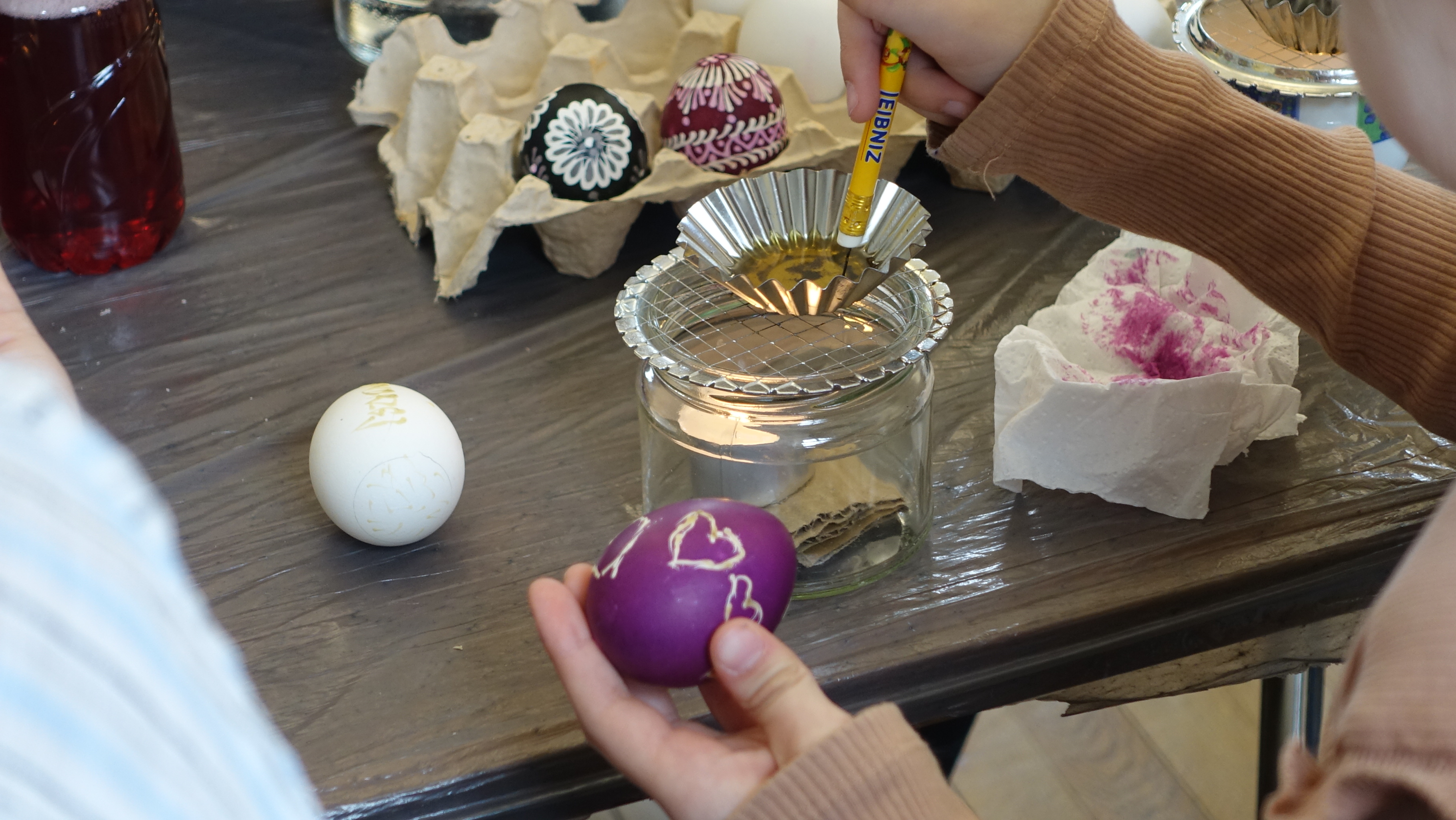 Podczas warsztatów uczestnicy poznawali technikę zdobienia pisanek woskiem. Jak wyjaśnia dyrektor TOK, nie jest to proste zadanie i wymaga precyzji oraz cierpliwości.